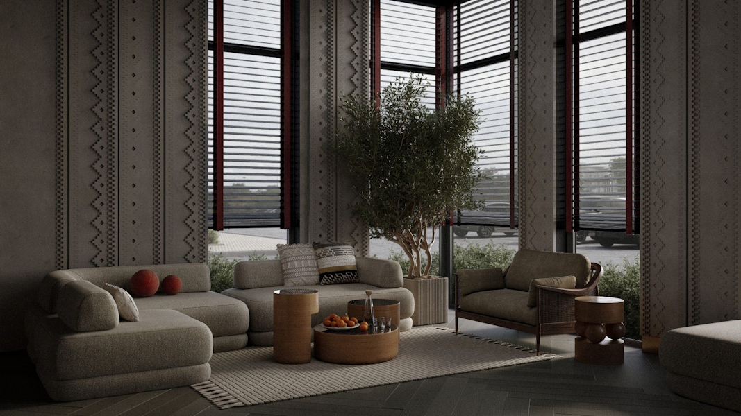 Интерьеры ЖК, как сообщается, «вдохновлены русской культурой и народными мотивами: тёплые оттенки, орнаменты и декоративные детали создают ощущение подлинности и эмоционального комфорта».