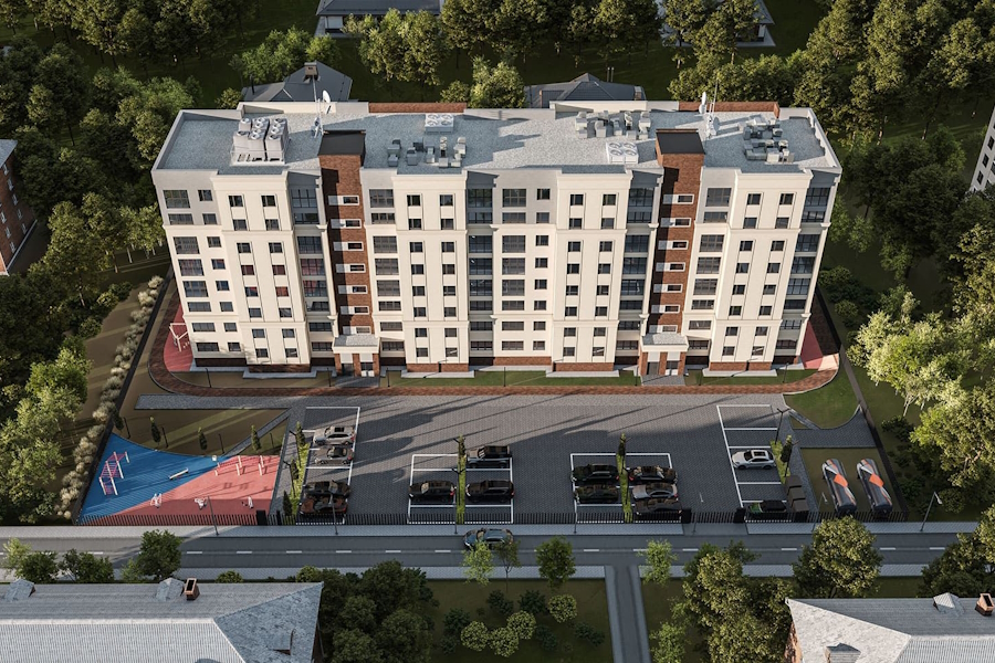 Однушка площадью 52,04 м² предлагается к покупке на втором этаже монолитно-кирпичной четырёхэтажки комфорт-класса на ул. Чехова. Дом планируют сдать в 2026 году. Потенциальным покупателям обещают «спокойную атмосферу», закрытую территорию, «продуманную инфраструктуру», а также «комфортный микроклимат и низкие коммунальные платежи» благодаря автономному газовому отоплению. Также упоминаются современный фасад и архитектура, малошумные импортные лифты, качественные входные двери в квартиры, не требующие замены, детская и спортивная площадки.