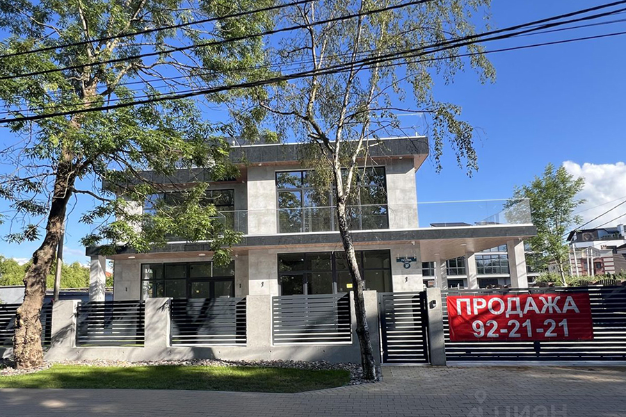 Двухэтажный кирпичный дом 2015 года постройки площадью 289,2 м² продаётся на ул. Красной на земельном участке площадью 14 соток. Объект находится на второй линии от моря, до которого обещают 5-7 минут пешком. В июле 2025 года объект занимал первое место в топе Малиновки. Тогда его пытались продать за 220 млн рублей.