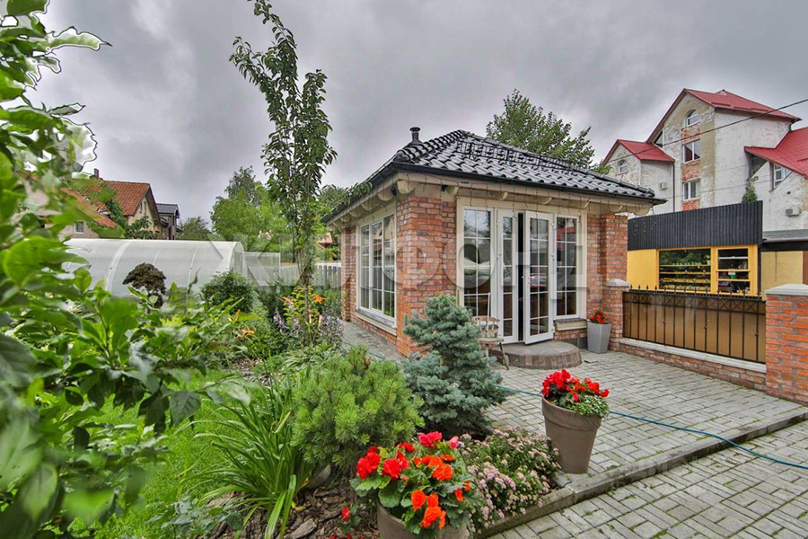 На участке обещают бассейн с подогревом, «релакс-зону» с лежаками, летнюю кухню в одном стиле с основным домом, теплицу, «сборный домик» для хранения, площадку для фитнеса с резиновым покрытием, теннисный стол, ландшафтный дизайн, ягодные кусты, плодовые деревья и живую изгородь из вечнозеленых туй.