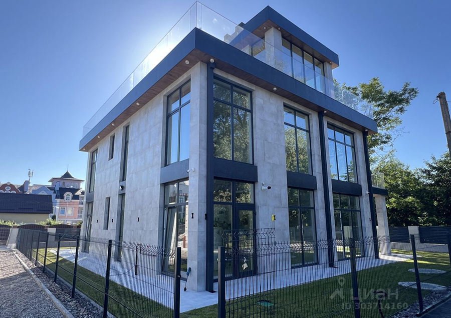 Возглавил топ трёхэтажный дом 2019 года постройки в центре Зеленоградска на ул. Горького (недалеко от вокзала), расположенный на участке площадью 4 сотки в «120 метрах от моря». Соответствующие данные размещены как минимум на трёх сайтах объявлений. А вот площадь самого здания «плавающая» — от 190 до 220 м². Разнится и цена. Самую низкую предлагает «Циан» — 154 999 000 рублей. Стоимость на «Авито» — 160 млн, на «Домклике» — все 200. При этом объявление там было опубликовано в 2020 году с ценой 45 млн рублей. В 2021 году дом «прибавил» ещё 9 млн, а в 2025-м — сразу 146.