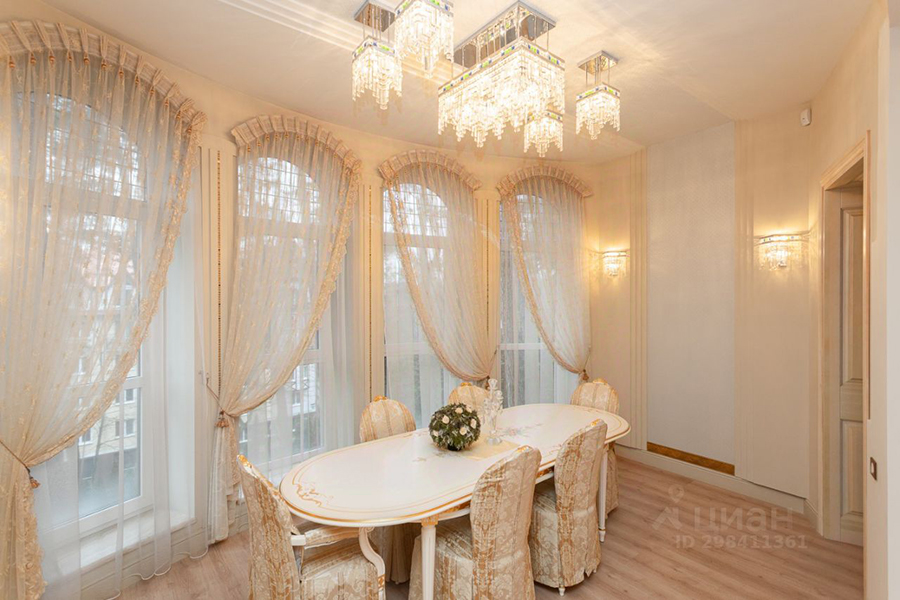 Замыкает топ трёхэтажный кирпичный дом 2008 года постройки площадью 381,6 м². Объект характеризуют как «роскошный». «В отделке использовались натуральные материалы премиальных брендов. Интерьер выполнен в светлых, спокойных тонах, с изящными акцентами. Вся мебель и техника премиальных брендов остаются при продаже. <...> Высокое качество строительства, грамотная и продуманная планировка, ремонт по дизайн проекту, месторасположение — все это делает дом уникальным», — считает автор объявления.