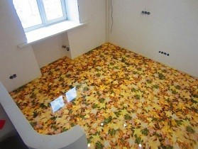 Когда с этим определились, поверх изобразительного материала особым образом заливаются качественные полимеры — на их высыхание уходит не менее 5 дней. Популярными и модными считаются наливные полы, где под полимерным покрытием четко просматриваются светоотражающие элементы либо своеобразные эстетические фрагменты с вкраплением камня или дерева.