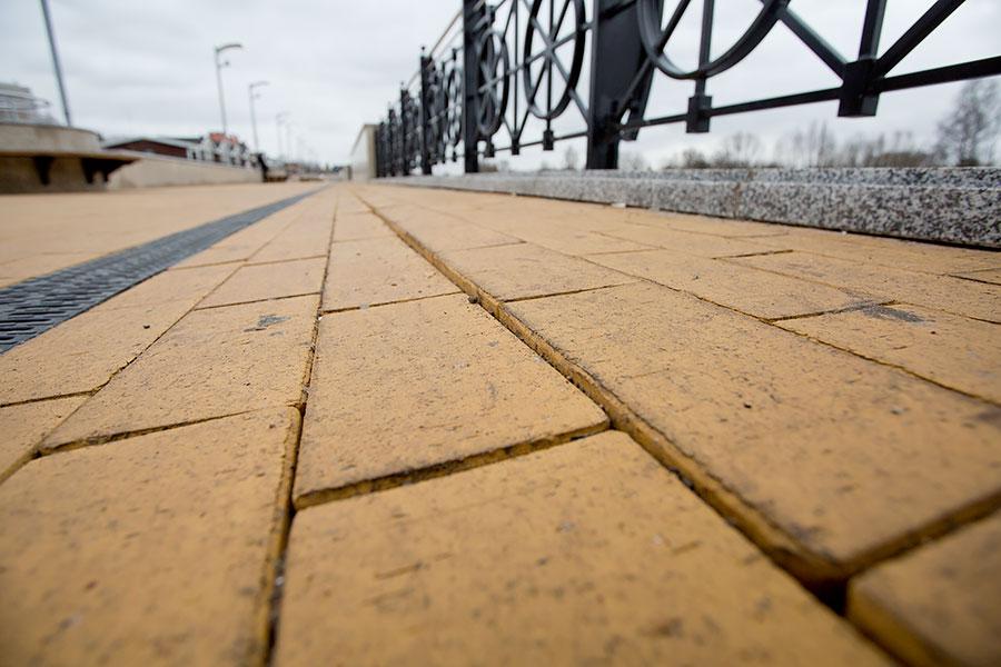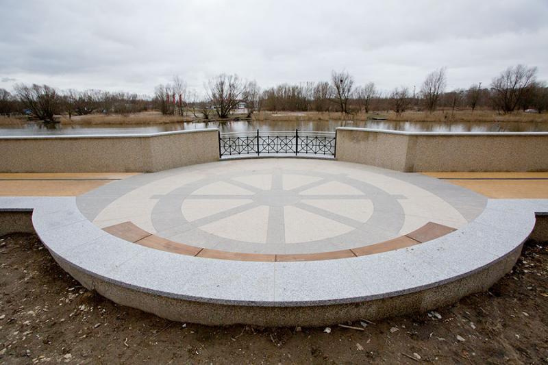 При дневном свете восприятие новой набережной кардинально меняется. Строители заканчивают укладывать плитку, на следующей очереди вовсю кипит работа, а новая городская пешеходная зона демонстрирует все свои изюминки, не замеченные в темноте.