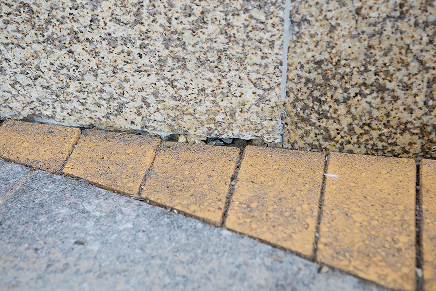 Ближе ко второй эстакаде работы ещё продолжаются — мраморная плитка частично ещё не уложена и ожидает своего часа неподалёку от пандуса. Дальше по направлению к центру города за строительным забором уже вотчина другого подрядчика, который должен закончить свою очередь к декабрю 2015 года.