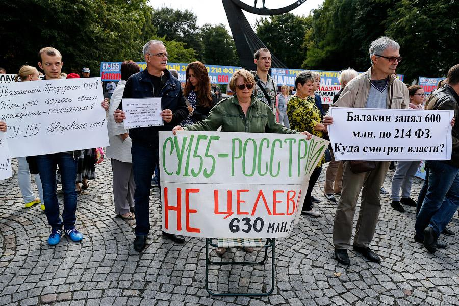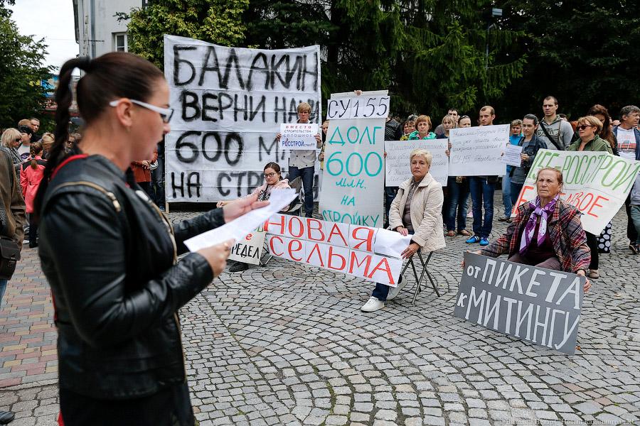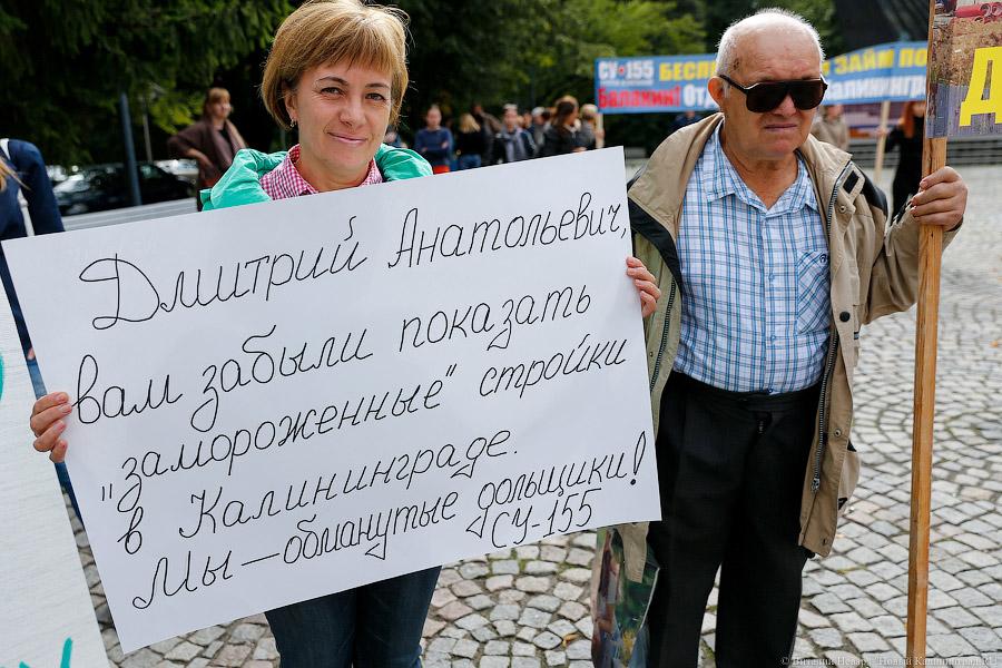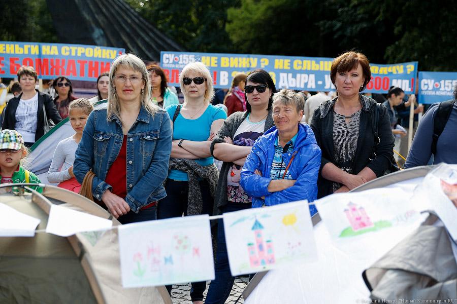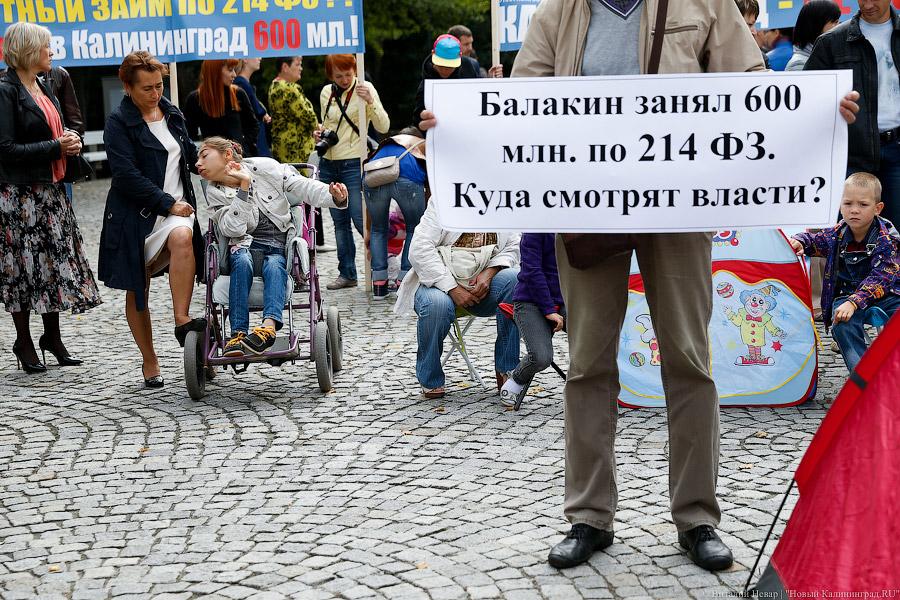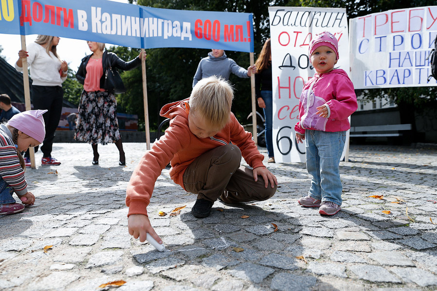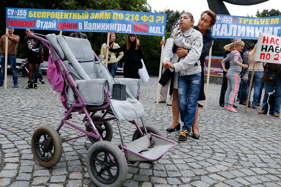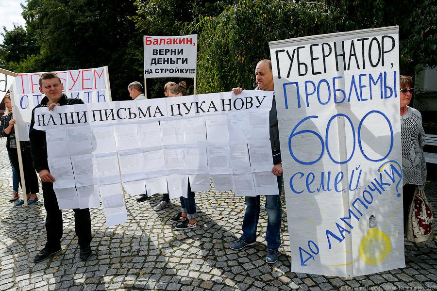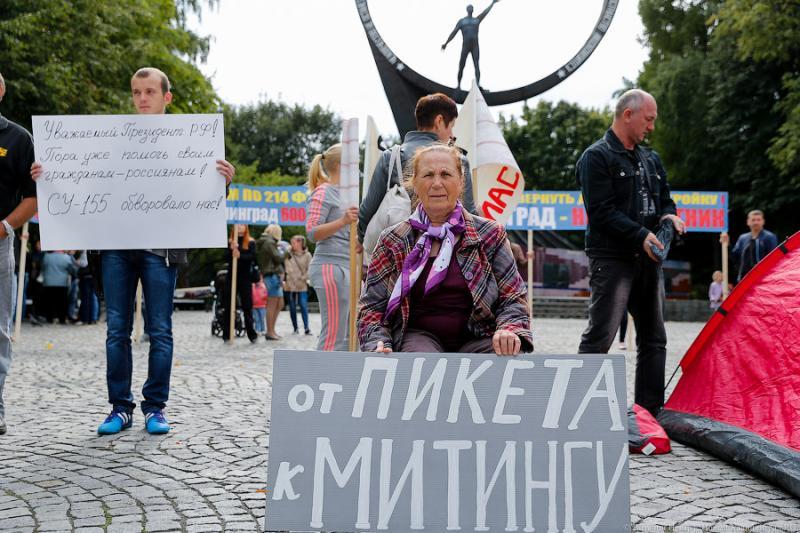 Калининградские дольщики решили перейти к активным действиям. На прошлой неделе за два дня прошли три пикета, на которые успели выйти, вероятно, представители всех проблемных строек города. В субботу уже в четвёртый раз с плакатами в сквер у памятника