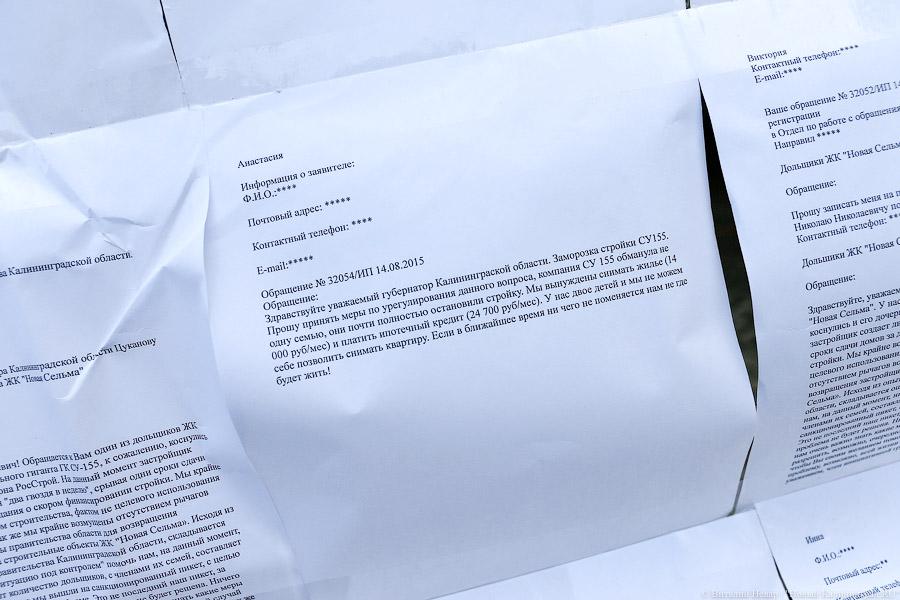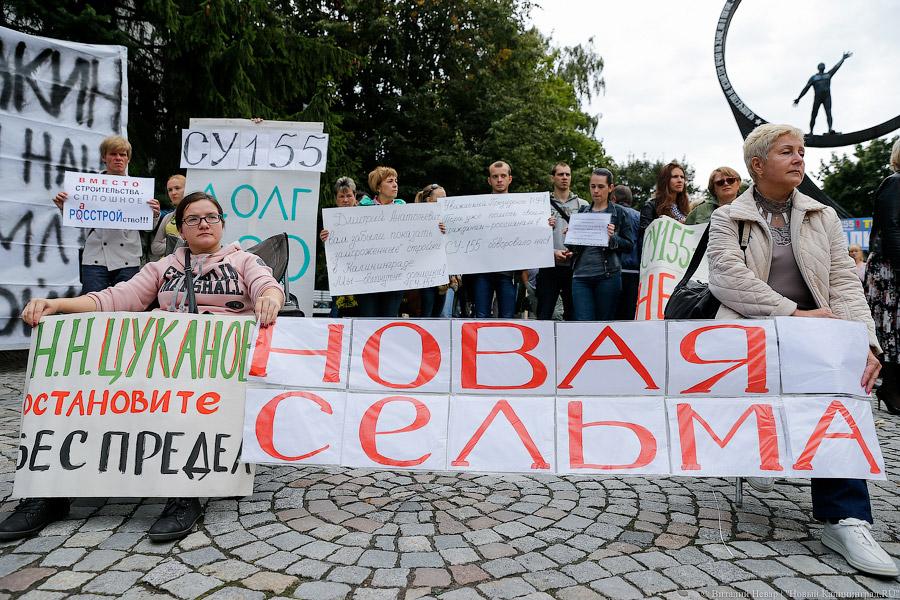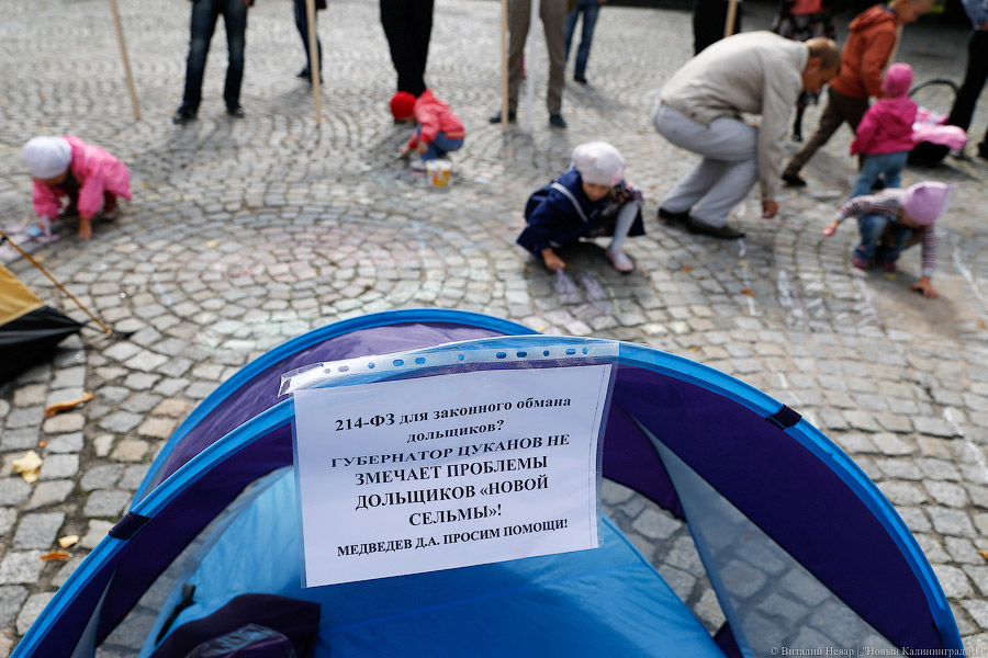 Дольщики «Новой Сельмы» на данный момент, пожалуй, самая активная и многочисленная группа среди калининградцев, пострадавших от застройщиков. Обнаружив ещё полгода назад, что строительство их комплекса изрядно замедлилось, они принялись писать обращения в региональное и федеральное правительство, затем добились встречи с представителями застройщика, выслушали обещания, которые так и не были выполнены, а теперь дошли и до еженедельных пикетов.