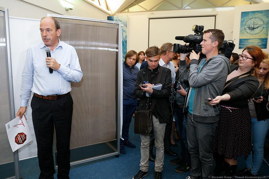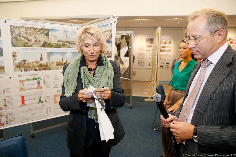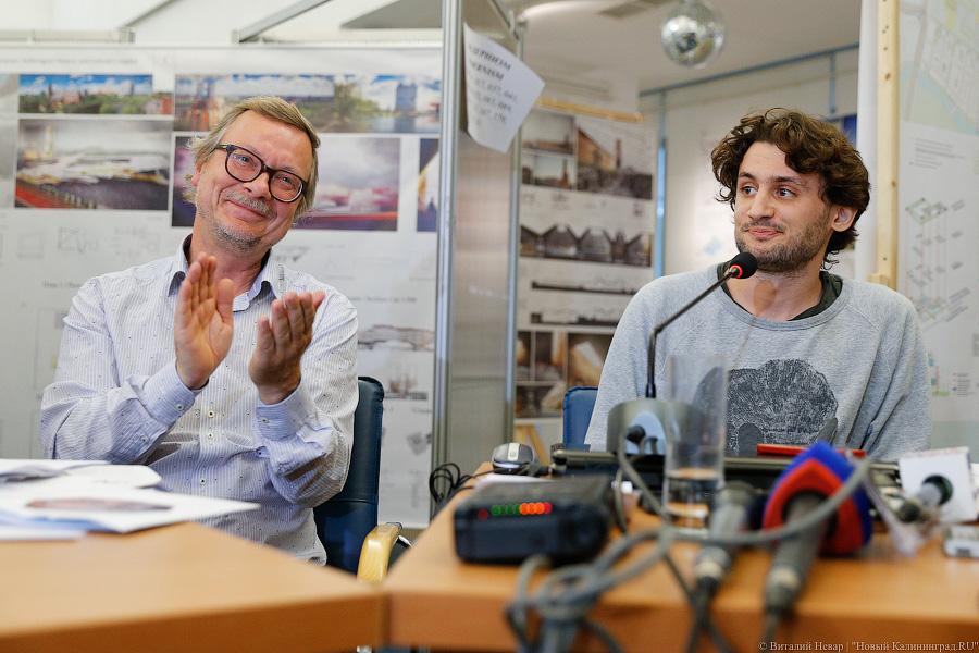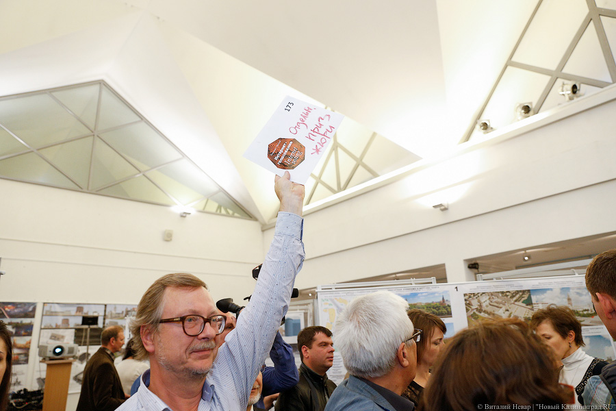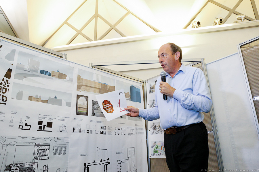 Победителя в тесном кругу прессы объявил председатель жюри, голландский архитектор Барт Голдхоорн. Два миллиона рублей достались молодому калининградскому архитектору (живущему, впрочем, в Милане) Антону Сагалю. Его концепция была выбрана жюри единодушно. Причём, как оказалось, судьи могли бы и проглядеть проект Сагаля, если бы на него не обратил внимание немецкий архитектор Ханс Штимманн.
