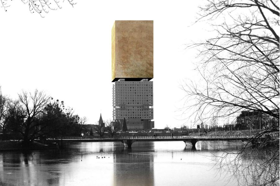 156 голосов и шестое место в нашем голосовании получили итальянские архитекторы из [A+M]² Architects. То же место и 367 голосов им достались и на официальном сайте «Сердца города». Видимо, калининградцам не пришлась по душе философская концепция, подразумевающая надстройку над Домом Советов аналогичного по масштабу объёма. Итальянцы назвали свой проект «Лайтхаус» и даже описание его начали с цитаты Иммануила Канта, тем самым задав тон всей концепции. Дом Советов в этом проекте — символ политической борьбы, характеризующей историю этого места, а суть проекта — в преодолении
