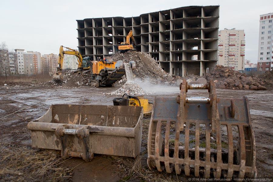 Спустя почти полтора десятка лет жители Сельмы наконец-то лишатся уже ставшего привычным глазу «памятника обманутому дольщику» — недостроенной многоэтажки «Калининграджилстроя» на пересечении улиц Челнокова и Гайдара. Компания «Акфен», выкупившая объект в августе за 45 млн рублей, в феврале приступила к сносу. «Недвижимость Нового Калининграда.Ru» в среду вместе с представителями администрации города наблюдала за концом знаменитого долгостроя.