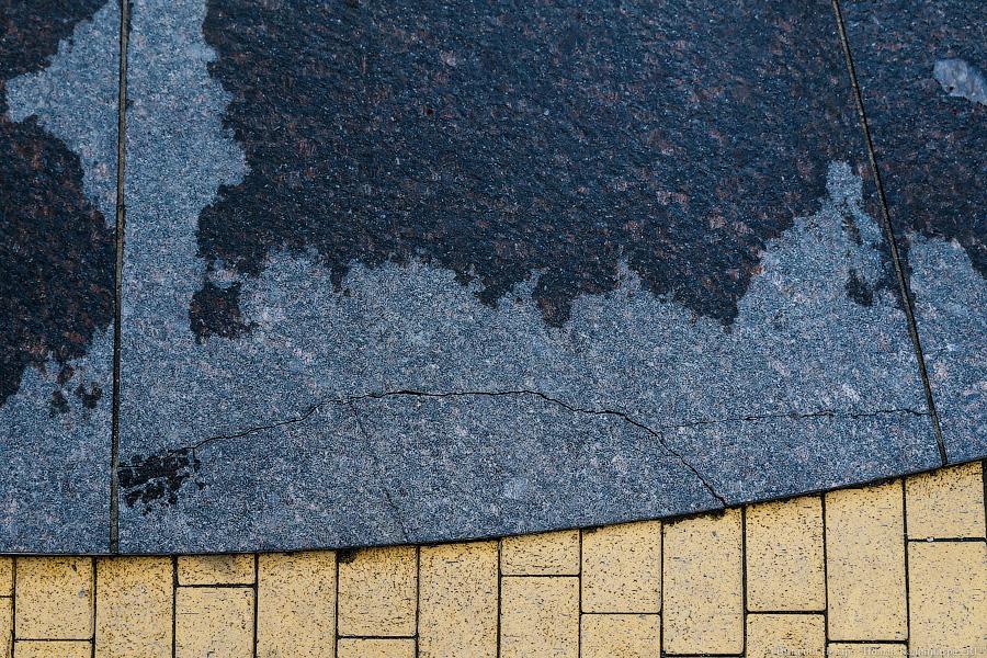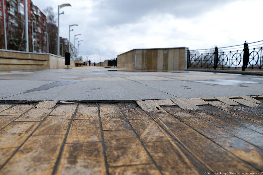 Все недоделки и упущения, замеченные нами прошлой весной, с первой части набережной никуда не делись. Более того, они стали ещё заметнее. Ну а по сравнению со свежим участком его старший брат и вовсе кажется «первым блином», который обязательно должен быть комом. Плитка на годовалом променаде пустилась во все тяжкие,