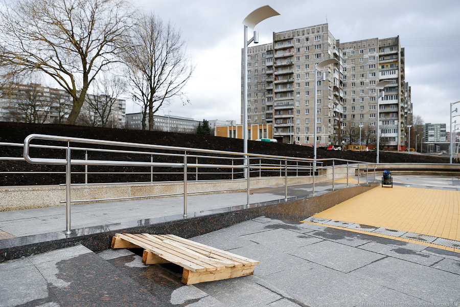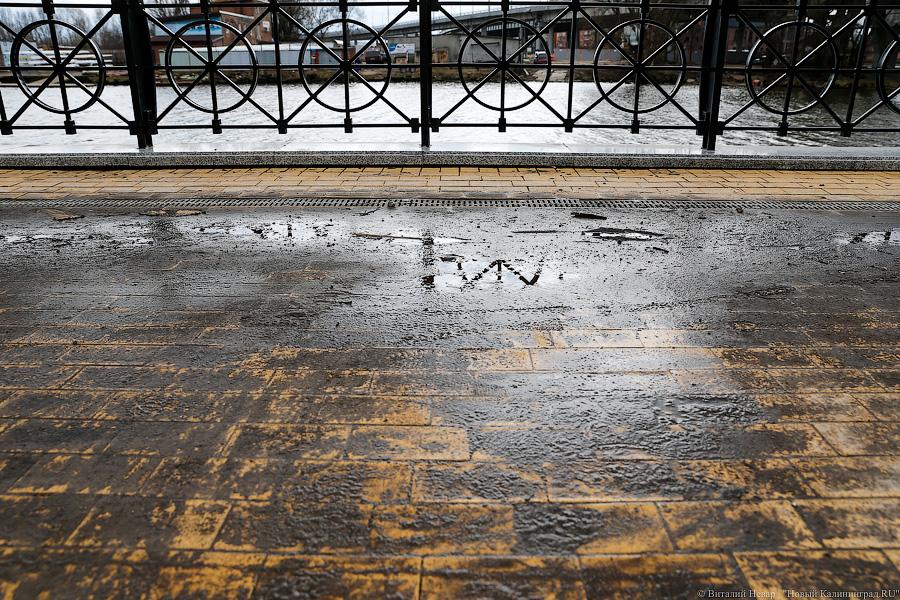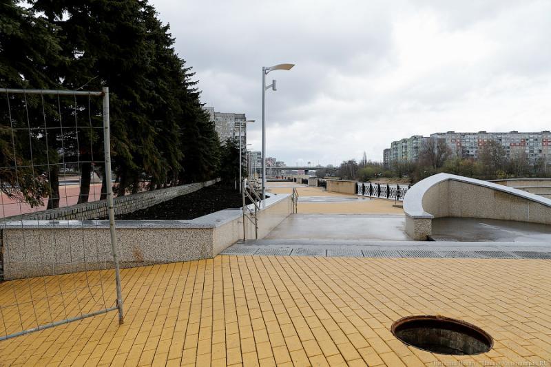 Кстати, о плитке — она, как ни странно, не стучит, не шатается и не стремится провалиться в преисподнюю, как это было в процессе сдачи первого участка набережной. Что ещё удивительнее — на набережной нет грязи и фактически нет луж. Может быть, после двухдневных дождей