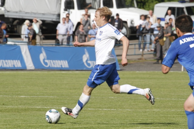 Если кто не в курсе, желтую карточку на 55 минуте получил оренбуржец Владимир Полуяхтов. Это который номер 2 и лежал на траве.