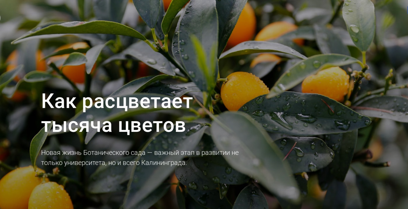 благоустройство Ботанического сада. Параллельно с этим БФУ имени И.Канта выделило из