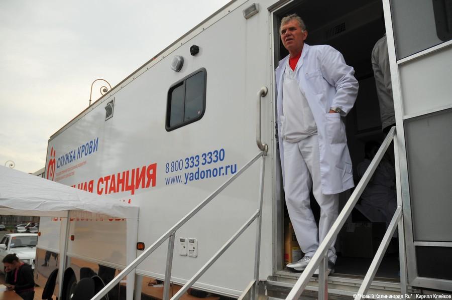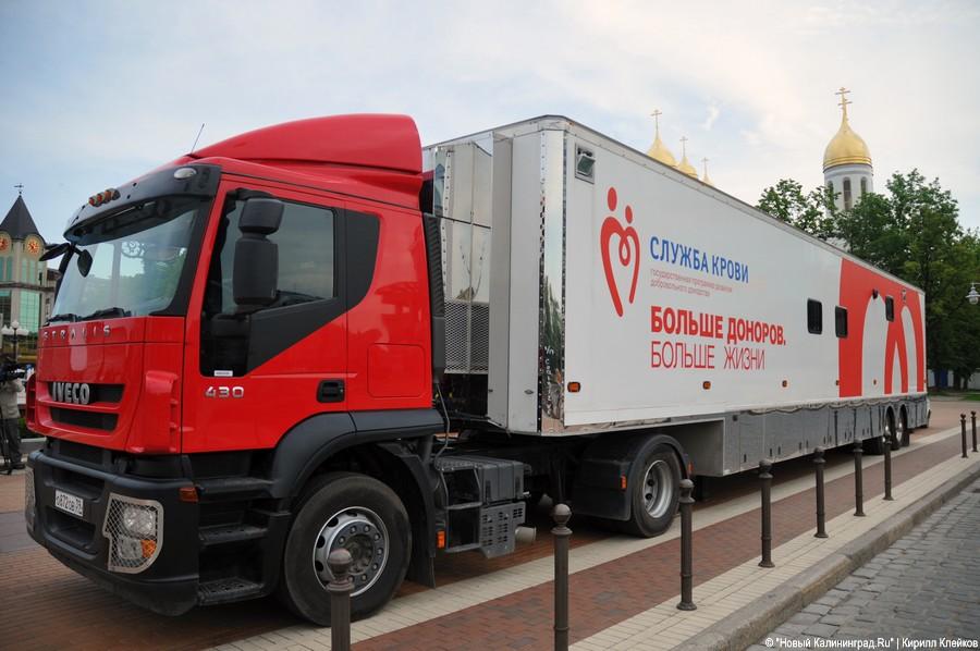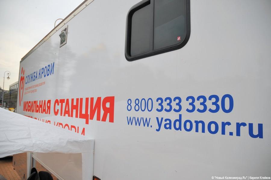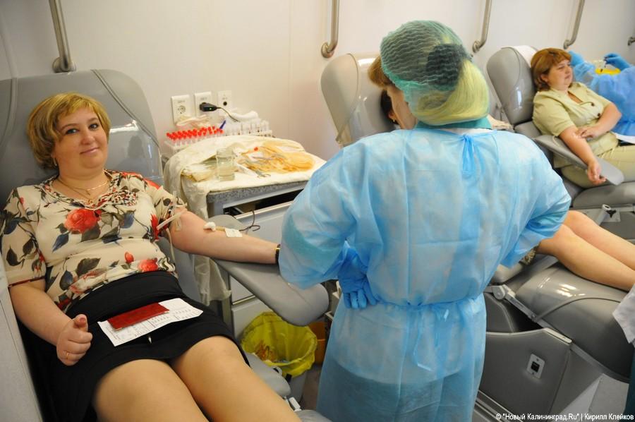 В среду в Калининграде в центре города работал большой передвижной автобус. Те, кто побывал внутри транспортного средства, выходили слегка обескровленными. Потому что большой автобус - это передвижная станция переливания крови и на Площади Победы он появился для того, чтобы как можно большее количество калининградцев смогли отдать немного своей крови тем, кто в ней нуждается.