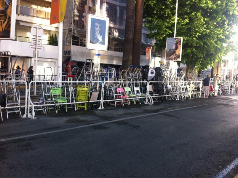 Жду обеда и иду смотреть его фильм. Завтра напишу. А пока — на фото лестницы для фотографирования звезд, которые журналисты прицепляют, как велосипеды, у Красной дорожки.
