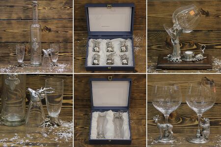 Стоит обратить внимание на посуду в охотничьем стиле из олова. Оловянная посуда стала особенно популярной в эпоху Ренессанса. Сегодня посуда из олова прекрасно сочетается с укладом современной жизни, одновременно являясь и украшением стола, и удобным в использовании предметом сервировки. Рюмки-перевертыши в анималистическом стиле, пивные бокалы с головами животных, винные бокалы с декором в виде фигурки оленя, кабана или медведя, стильные оловянные пробки с изображениями животных и другие охотничьи аксессуары точно удивят знакомых и друзей!
