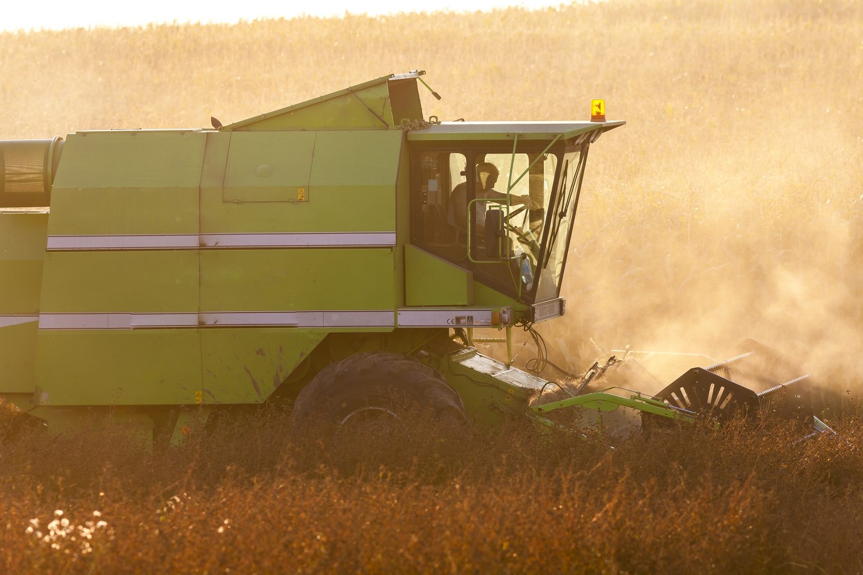 комплектом навесной техники, зерноуборочным комбайном «John Deere» с рапсовой приставкой. Для