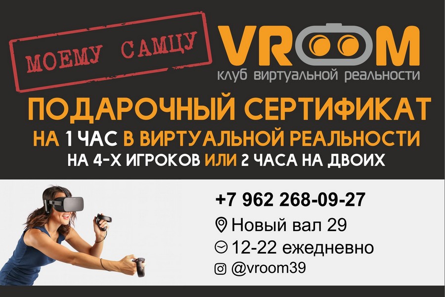 В VRoom можно приобрести сертификат на целую компанию из четырех человек. 1 час на всех обойдется в 1400 рублей. А можно взять два часа на двоих и вместе с любимым раскрыть заговор искусственного интеллекта против человечества, продолжить приключения Рика и Морти, заняться космическим пиратством или стать частью экипажа знаменитого «Энтерпрайза» из сериала «Звёздный путь». Стоит двухчасовой сертификат на двоих всего 1400 рублей.