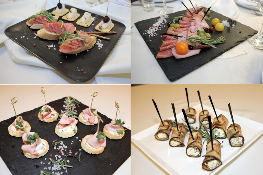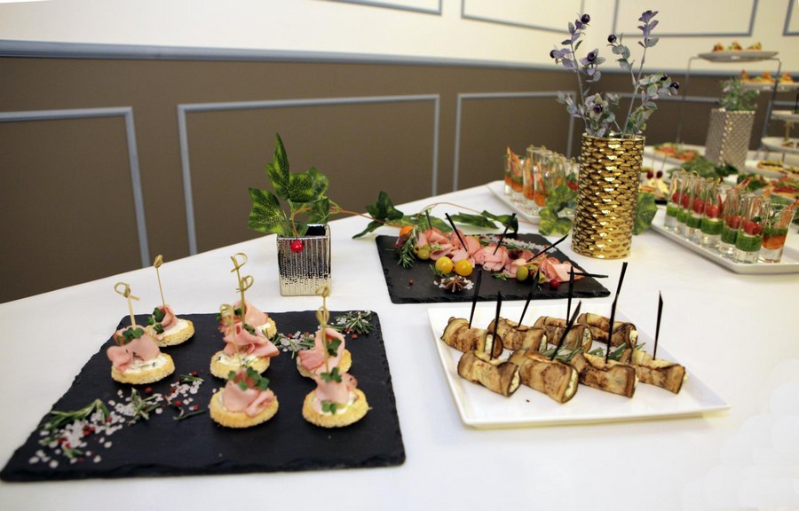 Если вас ждет романтическое свидание, закажите особый сет «для двоих» - брускетты с пастой из маслин, салями и зерновой горчицей, канапе с голубым сыром, грецким орехом и виноградом, рулетики из семги с крем-чиз на пшеничном тосте, ассорти мини-пирожных и т.п. Стоимость набора «На двоих» - 730 руб.