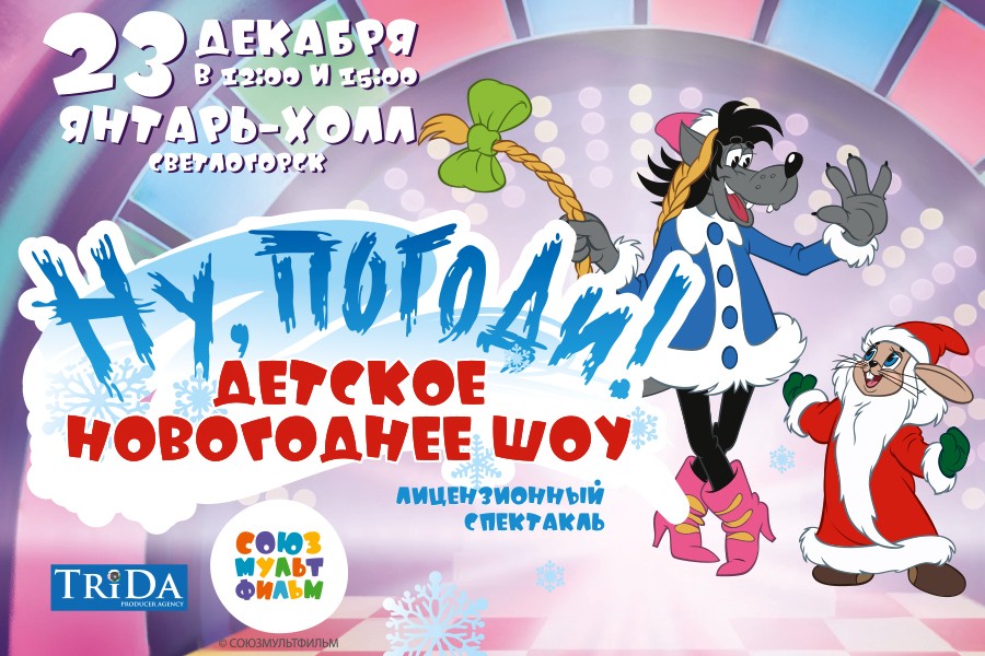 Для самых маленьких — новогоднее шоу «Ну, погоди!» от «Союзмультфильма». Захватывающая комедийная история, потрясающие декорации, изобилие танцев и всеми любимая музыка, а также интерактивные выходы героев в зал и захватывающий квест, встроенный в сюжет спектакля. Конечно же, с участием Деда Мороза и Снегурочки!
