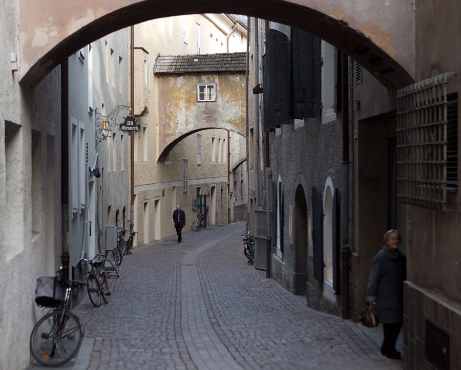 ...Это вот когда, к примеру, гуляя по альпийскому городку Брунико, внезапно ощущаешь себя будто бы в каком-нибудь Светлогорске. Дело не в архитектуре, хотя она местами очень даже похожа — такая же низкоуровневая застройка, изящные фронтоны и благородные потёртости на стенах. И не в свежем воздухе, у нас — с моря, в Тироле — с гор.