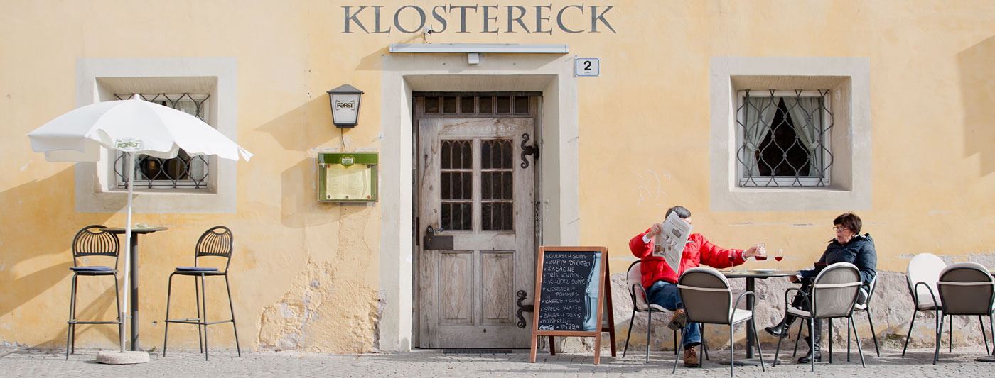 ...Это вот, к примеру, когда, лениво обводя взглядом пролетающие за окном вывески, вдруг выхватываешь один указатель улицы: Via Europa. И тут же чувствуешь, насколько далеко ты от дома даже не географически — подумаешь, два дня на автобусе, но культурно, исторически и вообще. Далеко. Кому бы пришло в голову дома называть улицу Европейской? Ну, или, учитывая новые тренды, Евроазиатской? А тут за будьте здрасьте. Альпы вообще и провинция Больцано — это Европа очень и совсем, безо всяких там допущений. Крыша Европы.