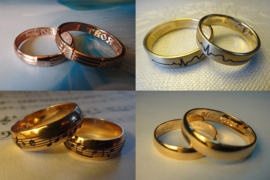 Все гравировальные работы компания выполняет на высокоточном алмазном и лазерном оборудовании под управлением компьютера. Вы можете выразить свои чувства, разместив на предмете, например кольце, имя дорого вам человека, признание в любви или кардиограмму вашего сердца.