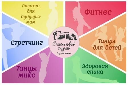 Главная уникальность студии «Счастливый случай» — это занятия «Танцы Микс», в который входят шесть разных танцевальных направлений: латина, бродвейский джаз,