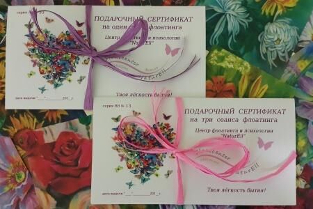 Подарочные сертификаты от центра флоатинга и психологии «NaturEll» .