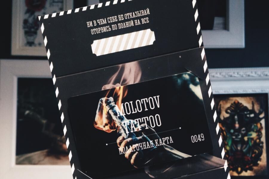 Подарочная карта на сеанс художественной татуировки в студии «Молотов Тату».