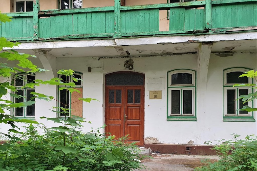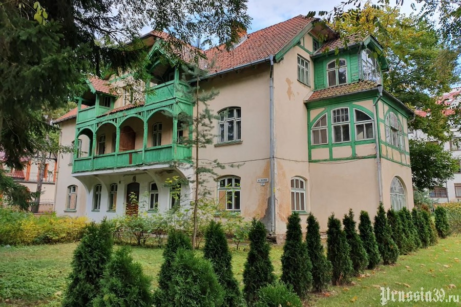 По данным сайта «Пруссия39», здание было построено в начале XX века на Гофман-штрассе в Раушене как частный пансионат. Это двухэтажное строение под сложной вальмовой крышей с мансардой, деревянными балконами на западном фасаде и застекленными фахверковыми верандами на южном фасаде. В послевоенные годы в здании размещался один из корпусов санатория профсоюзов.