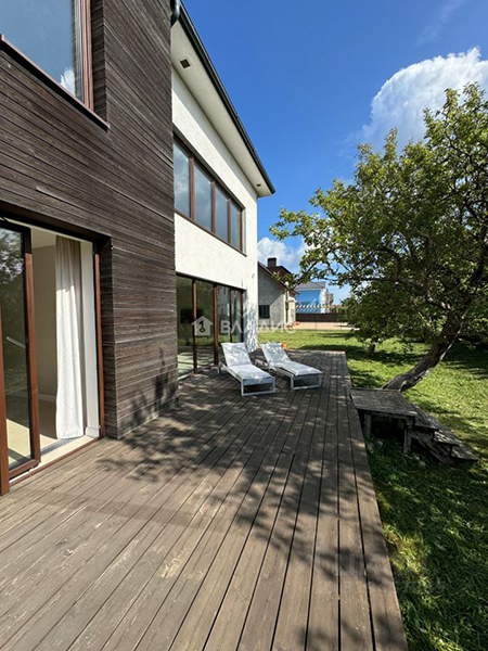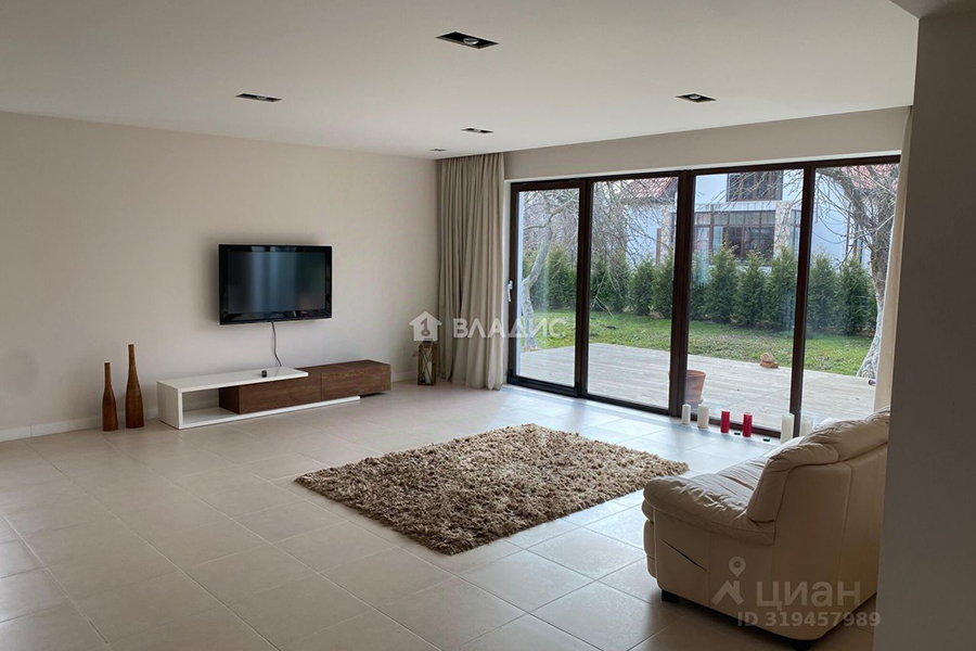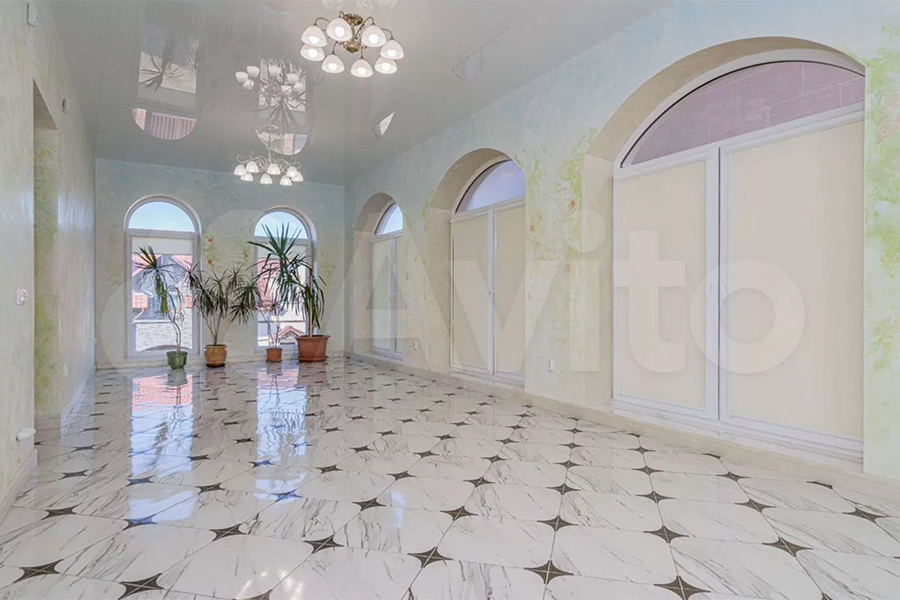 Внутри пять спален, кухня-гостиная, четыре санузла, зимний сад и «современная сауна». Да и сам дом современный, «построенный из экологически чистых и качественных материалов», утверждает автор. В стоимость входят «высококлассный ремонт, уникальный стиль покраски мастером-художником венецианской дорогостоящей штукатуркой», большие панорамные окна, противовандальные рольставни с дистанционным управлением, тёплые водяные полы с управлением термостатом. Финальный аргумент к покупке — «дом уютный, тёплый, комфортный, строился для себя».