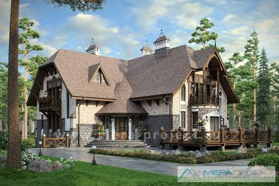 Второй этаж выполнен в «сером ключе». Там находятся шесть комнат, большой коридор и два санузла. Из материалов указаны чешская черепица и лиственница из иркутской области.