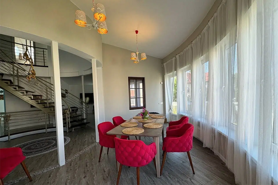 «Дом проектировался как вилла-гостиница в немецком стиле, популярном в начале ХХ века, — югендстиль (модерн) и фахверк, так что он идеально подойдёт как для большой семьи, так и для организации гостиничного бизнеса. Грамотная планировка с закладными под водоотведение и канализацию в каждом помещении позволяет произвести перепланировку под Ваши предпочтения, а также видоизменить размер и положение окон на 2-3 этаже башни», — сообщает автор объявления. Путëм достройки второго яруса на мансарде площадь дома можно увеличить до 500 м².