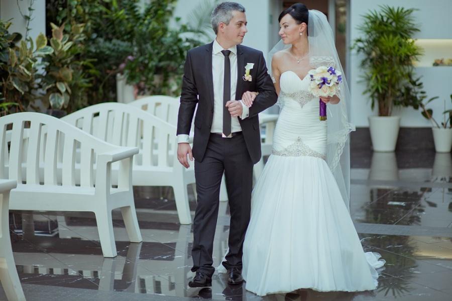 Но вот он настал, тот самый день. Не знаю, кто из нас двоих волновался больше, но уже с самого утра я перестала соображать, что происходит вокруг. Все делала как будто на автомате. Наверно поэтому самым ярким впечатлением от свадьбы для меня стал тот трогательный момент, когда мой отец вел меня под руку к будущему мужу. Эмоции переполняли, я жутко волновалась, и мне показалось даже, что время ненадолго остановилось.