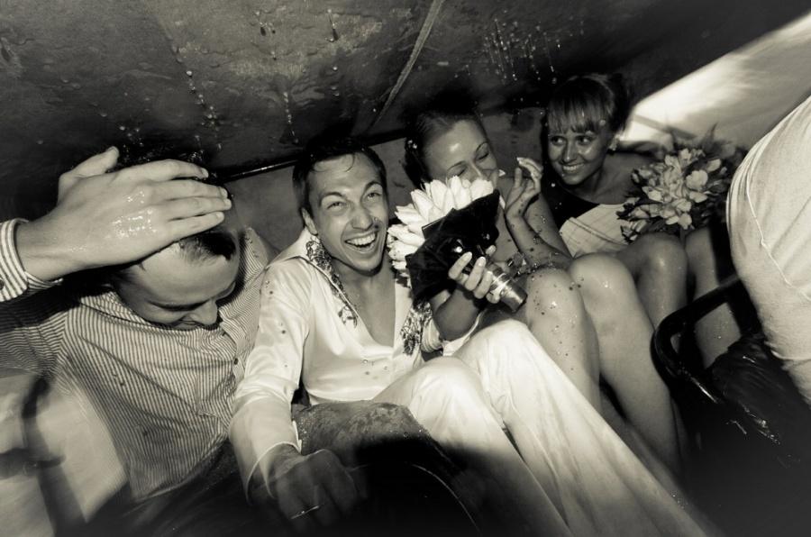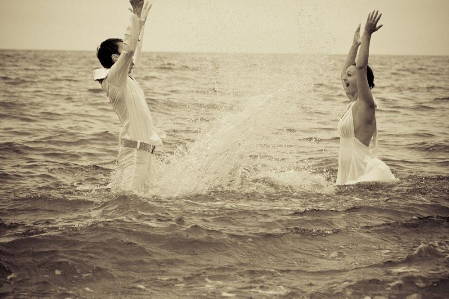 Сама свадьба пролетела в одно мгновенье. Запомнился ливень на выходе из ЗАГСа, который смешал все наши планы по фотосессии на море (которая потом все же состоялась). Первый танец – сальса, начало которого я совсем забыла, расслабилась, положившись на мужа, и он закрутил меня куда нужно! Певец, выписанный из Москвы. Ну и купание в теплющем ночном море с огромными волнами после того, как всех гостей проводили.