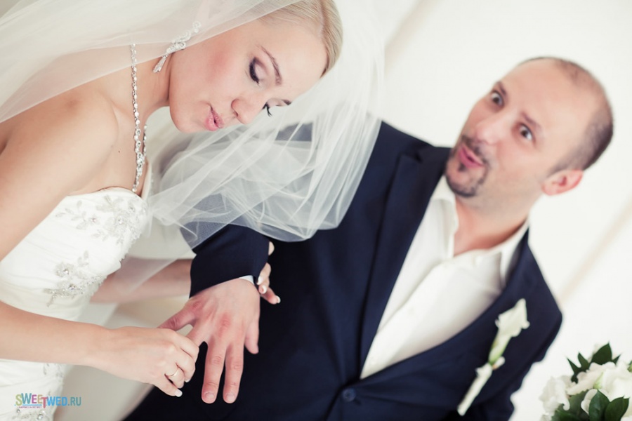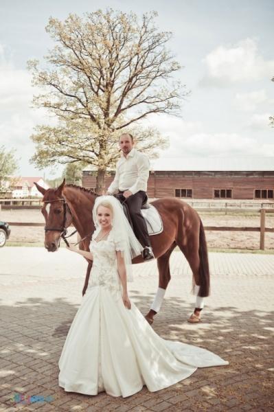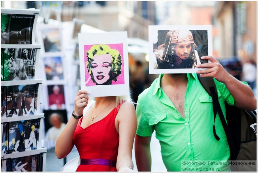 Предложение Денис сделал мне только через 6 лет, и так же романтично: в солнечный летний день, катаясь в парке на лодочке. Как и ко всем общим событиям в нашей жизни, к свадьбе мы готовились долго и тщательно. Идея о свадьбе в европейском стиле обсуждалась нами ещё задолго до принятия самого важного решения, и все прошло именно так, как мечтали: не было выкупов, караваев с рушниками, замочков, голубей и поездок по памятникам. Вся официальная часть, против обыкновения запланированная на утро, прошла в непринужденной атмосфере и продолжилась 4-х часовым фуршетом с небольшой прогулкой на лошадях в красивом месте, вместо ставшего уже традиционным банкета с конкурсами. И прямо с торжества днем мы уехали в свадебное путешествие в Италию! И свой первый семейный ужин провели уже за границей на берегу реки далеко от дома в новых счастливых статусах мужа и жены. А через несколько дней, в Риме, мы сделали себе ещё один чудесный подарок к свадьбе, заказав фотосессию в красивейшем городе мира.