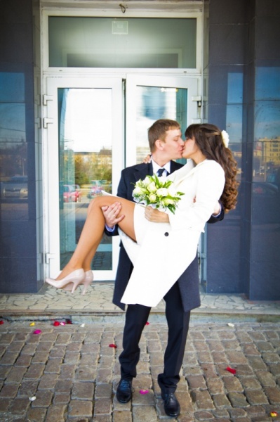 Роспись была назначена на 11.30, а в 11.10 я еще была в кресле парикмахера... а мой будущий муж в это время искал «специалиста» по завязыванию галстука, так как я этого делать не умела. В общем начиналось все довольно весело... Празднование свадьбы было в трех частях: 1 часть – родственники, 2 часть – коллеги по работе, 3 часть – друзья. А все потому, что мы не могли решить, как и где всех собрать, чтобы всем понравилось. В итоге свадьбу отмечали два месяца!)) Но если честно, я это событие готова отмечать каждый день! Спасибо моему любимому мужу за такой праздник!!!