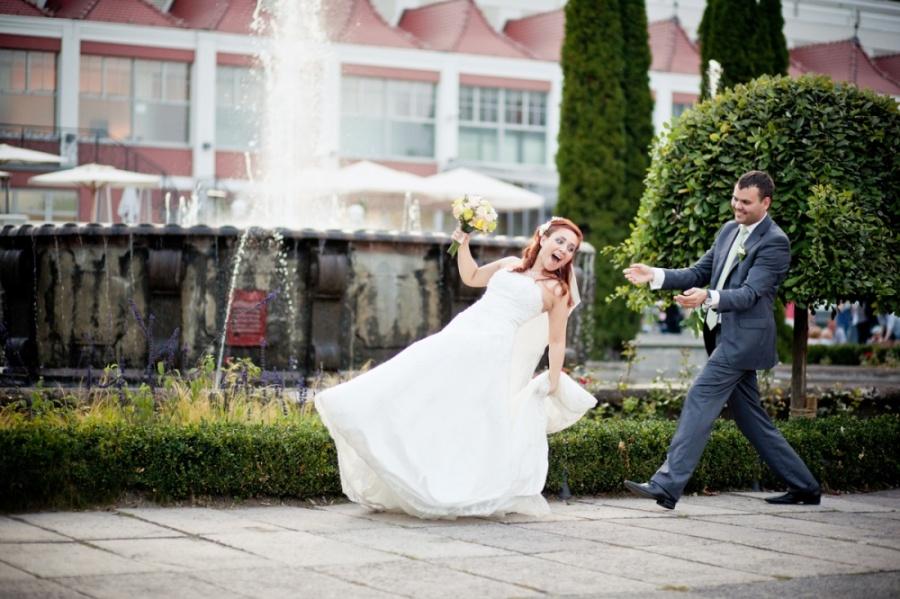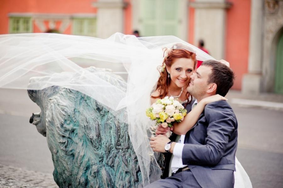Расписавшись в Калининграде, в эйфории от того, что теперь мы муж и жена, с фотографом и всей нашей веселой и дружной компанией мы расселись по машинам и... наше свадебное приключение началось! Пересекать границу в свадебном кортеже в белом свадебном платье, под шумные поздравления не только гостей, но и всех людей, решивших в тот день поехать в Польшу, и, даже, работников погранично-таможенной службы – это незабываемое впечатление:)! В Польше нас ждало невероятно доброжелательное отношение жителей города, иностранных туристов и персонала гостиницы. Уже поздно вечером мы совершенно случайно оказались на музыкальном фестивале под открытым небом. И вот по инициативе гостей фестиваля свадебный букет уже летит со сцены прямо в зрителей!