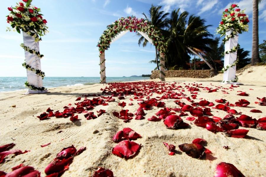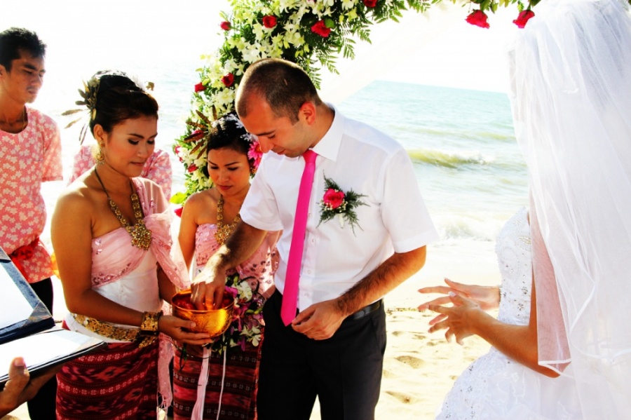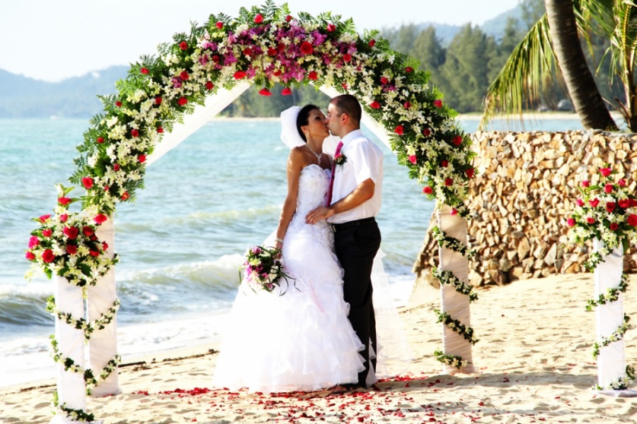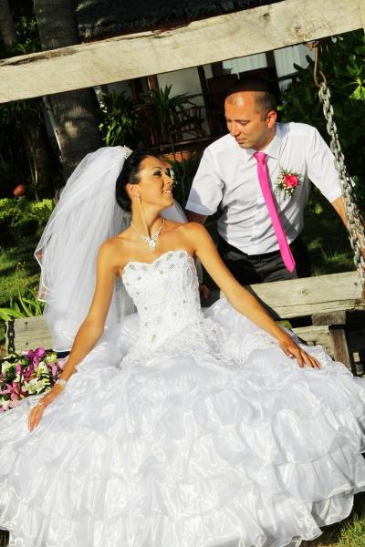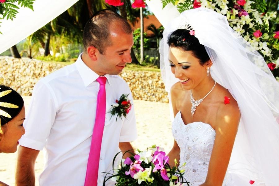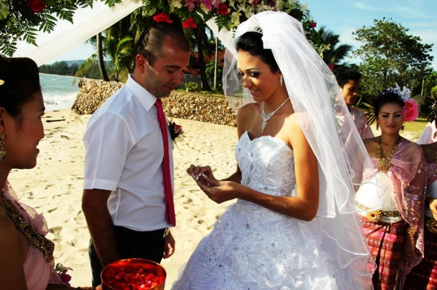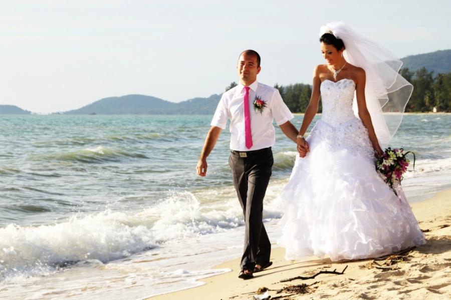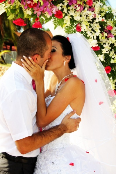 На остров мы прибыли за неделю до дня Х, я уже лично познакомилась с организатором свадьбы и с фотографом, мы обговорили последние мелочи, и оставалось только ждать. Конечно, как и любая другая невеста, я очень переживала, по сто раз прокручивала в голове клятву и мечтала о том, что бы все было идеально. Утро долгожданного дня прошло как в тумане, и вот мы уже стоим на берегу, держимся за руки и под шум прибоя говорим друг другу клятвы нашей любви.