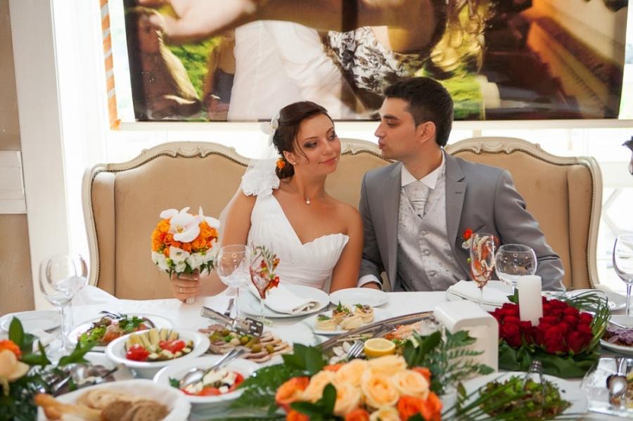В тот день была шикарная погода. Весь день светило солнце, и у нас получилась чудесная фотосессия. Само торжество проходило в ресторане «Усадьба», там же была и регистрация.