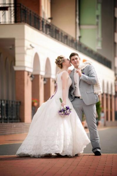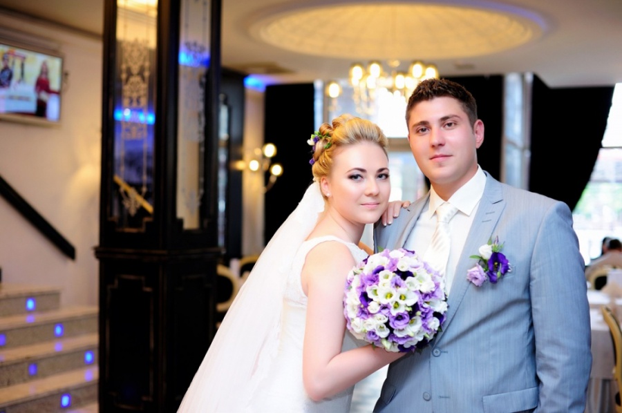 Свадьба была в фиолетово-белой тематике, и на ней были самые близкие и родные (90 человек). Вот такая маленькая история начала нашей семьи.