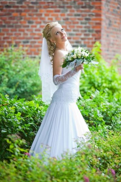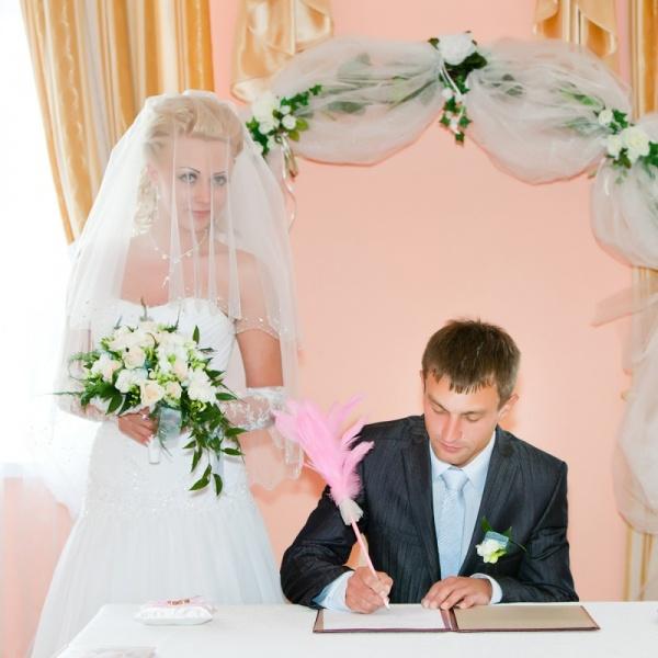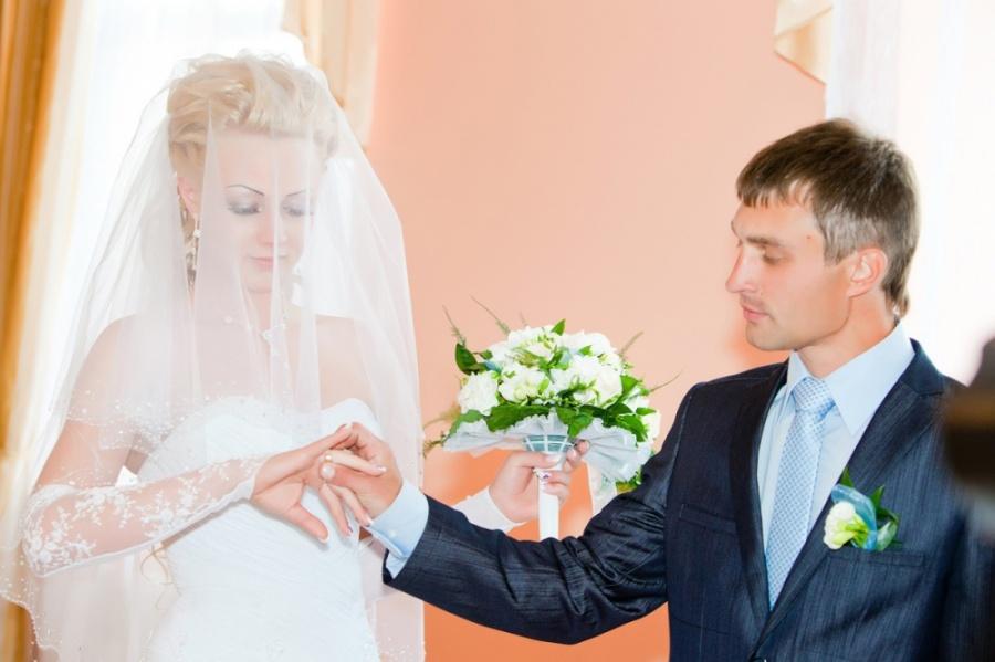 Проснувшись с утра я была очень огорчена: за окном была гроза с сильнейшим ливнем. Потом были сборы, все как в тумане, помню только, что очень переживала и меня сильно трясло. Ну вот я вся при параде, рядом встревоженная мама, фотографы и видеооператор, которые постоянно просят меня улыбнуться, принять нужную позу. Я все делаю на автомате и почему то совсем не улыбаюсь. Приехал мой будущий супруг, слышала как он кричал, что любит меня. Мучили его выкупом минут 30. И вот он заходит, поднимает мою фату, целует.