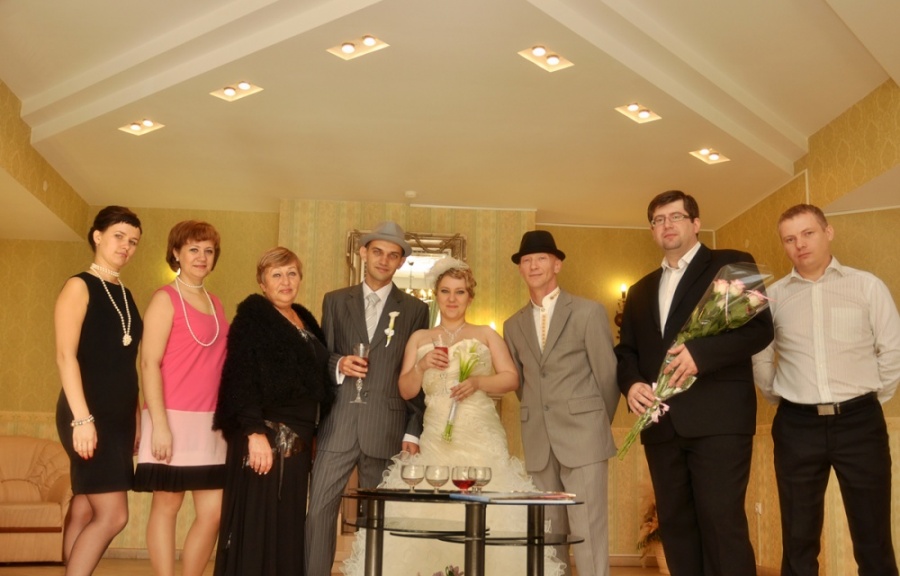 Мы очень переживали, что не успеем подготовиться, ведь у нас был только месяц на все, а многие готовятся по полгода. Но мы все успели. О традиционной свадьбе не было и речи после 4-х лет совместной жизни, и поэтому решили, что нам нужны впечатления, эмоции и приятные воспоминания. Выбор пал на стиль Чикаго 30-х годов. Огромное спасибо нашему фотографу Дубровской Лауре, которая с полуслова поняла, что мы хотим и как это оформить. Волей случая, проезжая в пробке, мы увидели наш лимузин. И хотя изначально была выбрана и оплачена другая машина, увидев лимузин, я была в него просто влюблена.