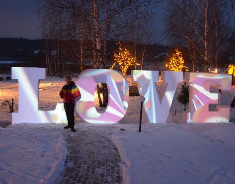 в данном случае представляет собой видеопроекцию на объемные буквы (размером 1,8 м высотой или любого другого по вашему желанию). Мы изготавливаем любые буквы по заданию заказчика, также возможно использование стандартных букв «LOVE». Установка букв происходит днем до начала торжества, в светлое время суток — буквы «работают» как объект декора, а как только наступают сумерки — начинает работать видеопроекция, перебирая незамысловатые фигуры и тематический контент.