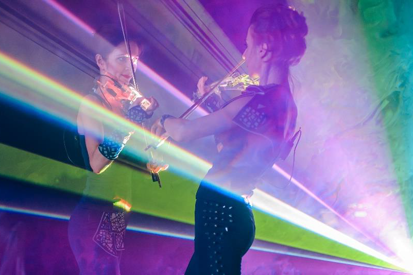 Необычный номер для программы свадебного торжества. Это cоединение выступления «живого» скрипичного электродуэта и лучевого лазерного шоу. Лазерные эффекты строго синхронизированы с музыкальным сопровождением. На выбор заказчику предлагаются различные музыкальные композиции.