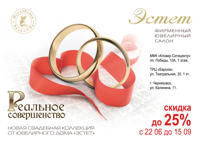 Будем рады видеть Вас в ювелирном салоне «Эстет», ТЦ «Кловер Сити центр», 1 этаж с 10 00 до 21 00!