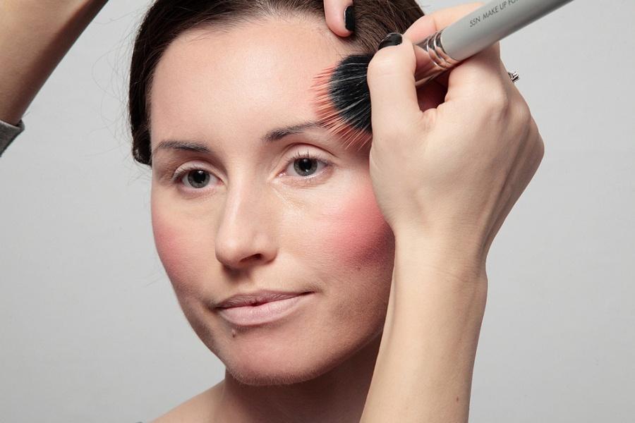 В свадебном макияже необходима особая тщательность при наложении тона и растушевки теней и румян, ведь невесте придется «сохранять лицо» в течение всего дня. Тональный крем должен максимально соответствовать естественному цвету кожи – это особенно важно, если Ваше свадебное платье открывает декольте и плечи. А вот цвет теней, напротив, должен контрастировать, а не совпадать с цветом глаз, чтобы подчеркнуть их форму и выразительность. При наложении румян надо пользоваться так называемым французским способом, дающим эффект «счастливого лица»: накладывать румяна надо улыбаясь. Улыбка наилучшим образом обозначает линию скул, и если вы подчеркнете ее при помощи румян, то будете выглядеть особенно свежо.