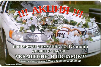 Специально для вас — акция: до 15 июня при заказе лимузина от 6 часов — украшение в подарок!